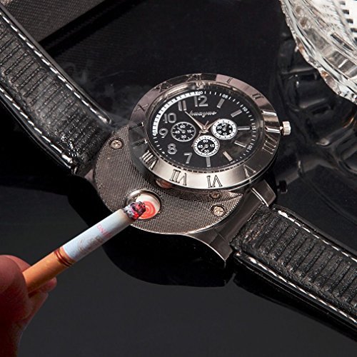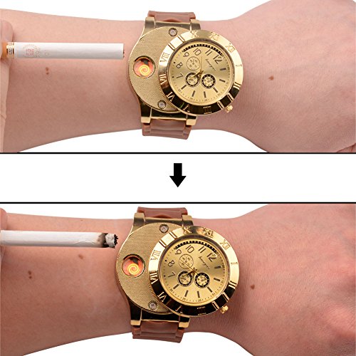 -. Title : Cigarette Lighter Watch,Vishm Multifunctional Men's Rechargeable Sporty wristwatch Stylish Cool Digital USB Flameless Fashionable Quartz Watch Windproof - Best Gift