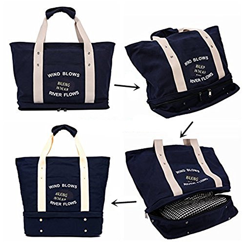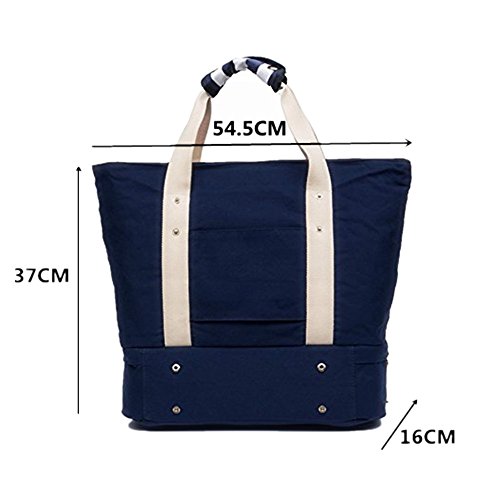 -. Feature : [Material and Size]: well made of durable canvas fabric,delicate seams and corner stitching. A comfortable size of 54.5x16x37cm (LxWxH) to wear on the shoulder or hand carry. / [Multiple Compartments]: Multifunction shoulder handbag, stylish, classic, practical, multi-purpose and portable design.1 large main bag, 1 internal small zippered bag 25x17(LxW), 1 bottom zippered bag 39 x16cm (LxW). / [Smart and Simple Design]: The duffel bag design with a back open sleeve to place the bag on the carrier or suitcase for easy carry.Can set your hand free, convenient for travel. The mesh interlayer helps you organizer items perfectly. / [Internal Detachable Zipper Pocket]: The main compartment has a removable pocket for important personal documents. There's a zipped mesh area for you to organise your belongings. The bottom pocket can hold up to 8 Men's shoe size or 9 Women's shoe size, also good for you to put a change of clothes for overnight stays. / [Intended Use]: Perfect for weekends or overnights,traveling, work, shopping, school, day trips, vacation, sport or any other daily occasions.Suitable for Women, Men, Teens and big Kids as personal bag.The bag is perfect for day-to-day use or occasional travel, and great gift for everyone.