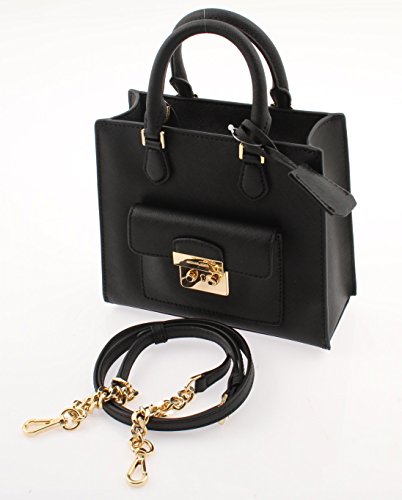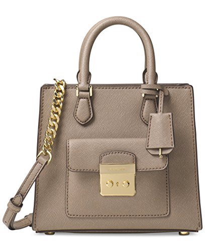 Part structured tote, part crossbody and all polish, this saffiano leather tote from MICHAEL Michael Kors is punctuated by glossy, 18K gold tone-plated hardware.