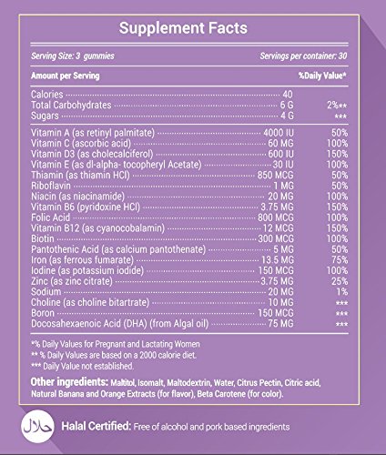 NoorVitamins Prenatal Gummy provides complete nutritional support for women before, during and after pregnancy. Contains 100%+ daily value of key vitamins and minerals with plant sourced DHA. Support your baby's health from the start in a delicious gummy.*Feature