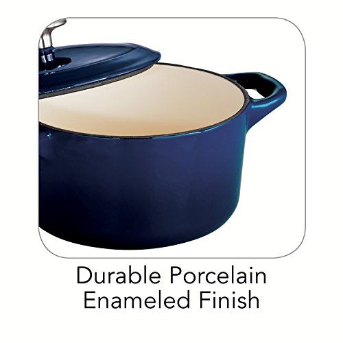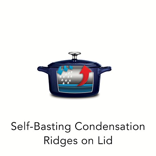 Enameled solid cast-iron offers superior and even heat retention while vibrant gradated porcelain-enamel exterior offers contemporary styling