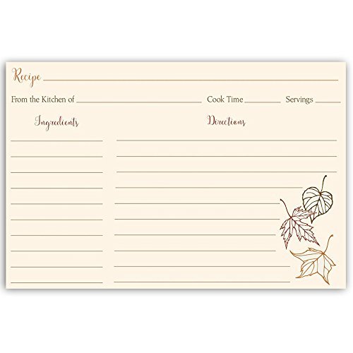 Recipe Cards, Double Sided, 4 x 6, Autumn, Falling Leaves, Orange, Brown, Chocolate, Bridal Shower, Chic Country, Rustic Ivory Fall Leaves 24 Printed Cards Wedding Housewarming Kitchen Cooking Baking