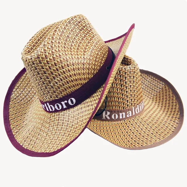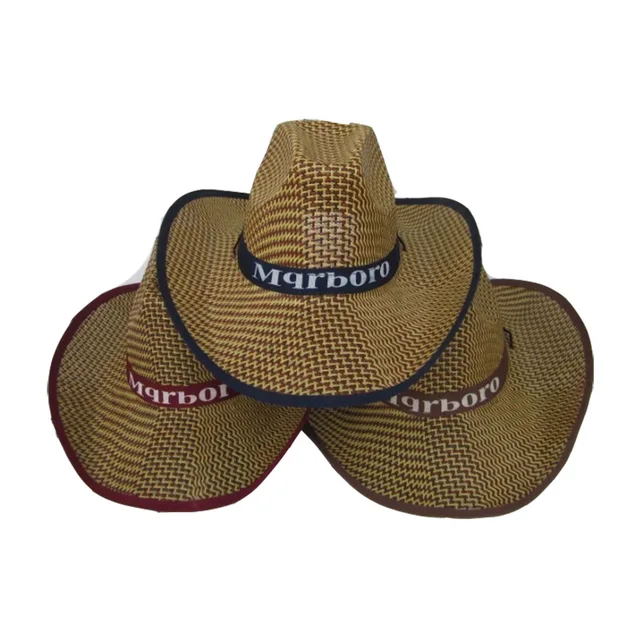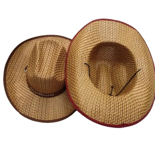 | [해외]대나무 직물 밀짚 매트 양산 모자 남성 부르크 웨스트 카우보이 모자 멋진 패션 버킷 모자 |