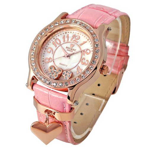 상품명: Disney 디즈니 미키마우스 손목시계 워치 MICKEY MOUSE 하트 참(매력) 가죽 벨트 스와로브스키 【크리스마스 모델】
