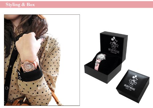 Disney 디즈니 미키마우스 손목시계 워치 MICKEY MOUSE 하트 참 가죽 벨트 스와로브스키 【크리스마스 모델】