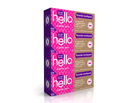 Hello Oral Care Fluoride Toothpaste for Kids Age 2 Above, Bubble Gum, 4 Count