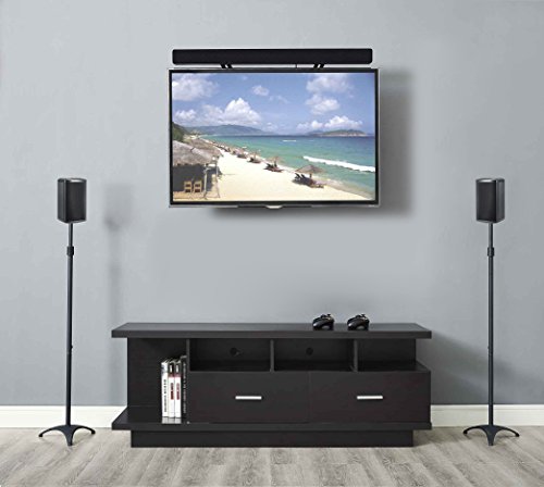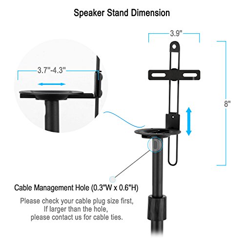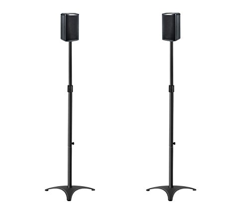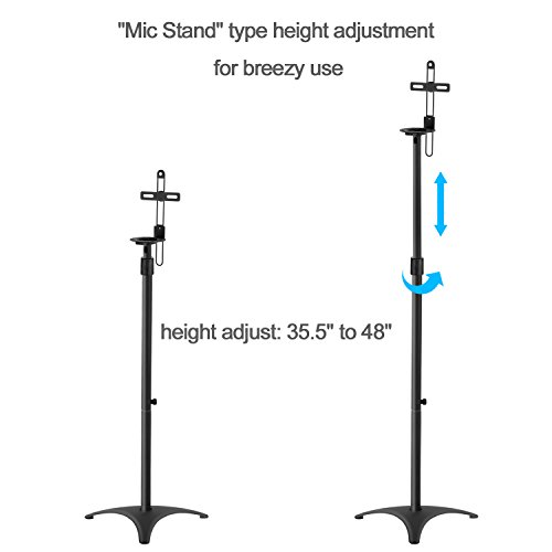 Floor standing and extendable tube from 35.5" to 48"Floor standing design features with strong triangle shape base. Extendable tube is adjustable from 35.5" to 48" depending on listening area for surround sound