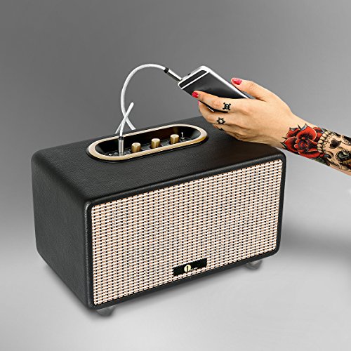 1byone 25W Bluetooth HIFI Stereo Speaker, 3.5mm Port, Adjustable Bass and Treble, Wooden Cabinet, PU Leather Wrapping