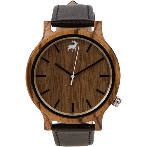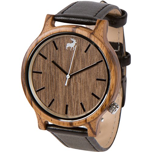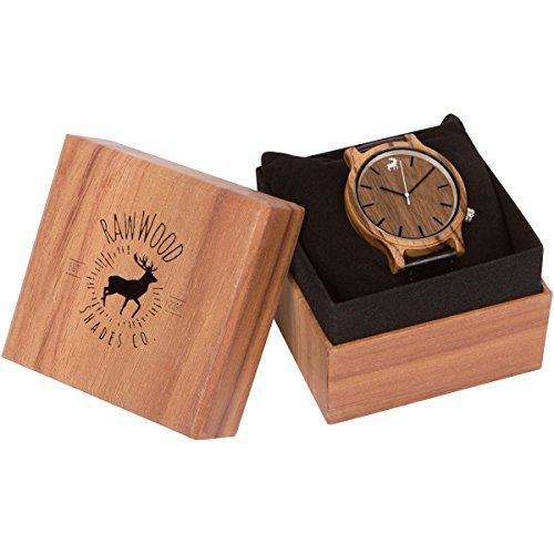 RawWood Wood Watch Zebra Wood with Leather Strap Handmade Wristwatch