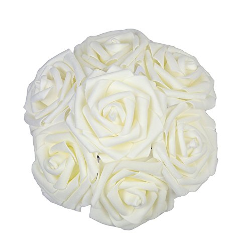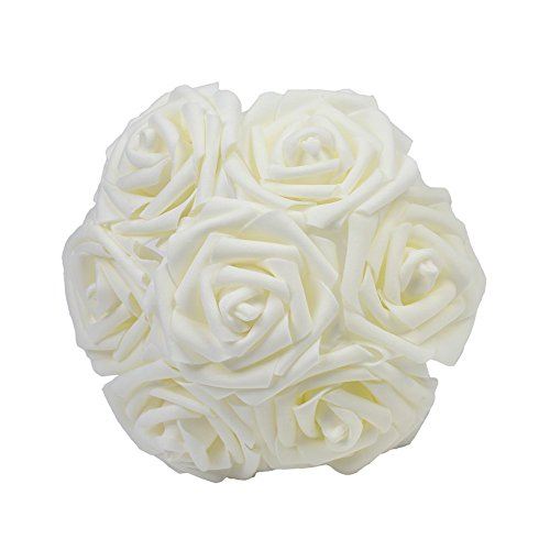 Houda Artificial Flowers 20Pcs Real Touch Artificial Roses for Bouquets Centerpieces Wedding Party Baby Shower Decorations DIY (Cream)