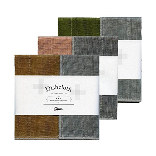 -. Feature : Set of 3 dishcloths: tea brown, pink, and moss green / Infused with binchotan charcoal which makes the dishcloth antibacterial and anti-odor / Unique Japanese weave is absorbent and durable / Individual dishcloth dimensions: 13.5 x 13.5" / Made in Japan