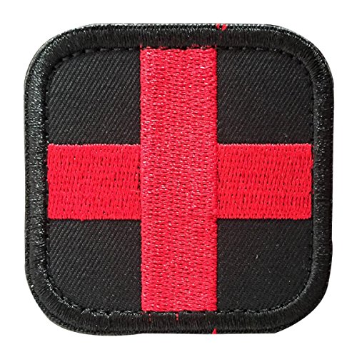 SpaceAuto Tactical Morale Patch Medic Cross Velcro Desert Military Badge - Black