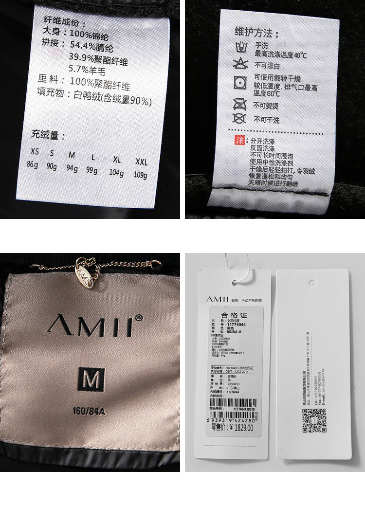 | 洗涤标准: | 不可浸泡不可熨烫不可干洗不可漂白40℃以下手洗 |
