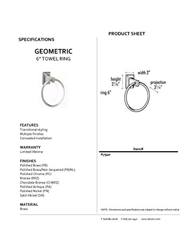 Alno A7940-CHBRZ Geometric Transitional Towel Rings, 6", Bronze