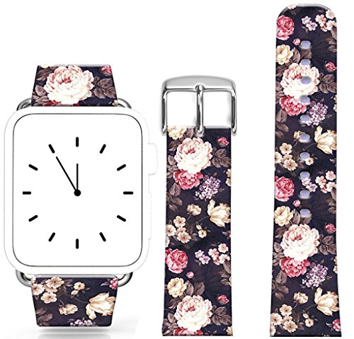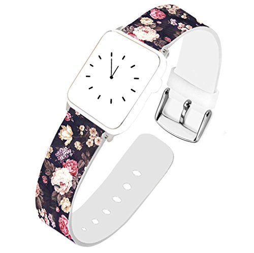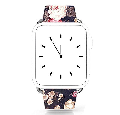 Leather Band for Iwatch 42Mm Series 1 Series 2,Watch Strap Genuine Leather Replacement for Iwatch 42Mm Black Elegant Flower