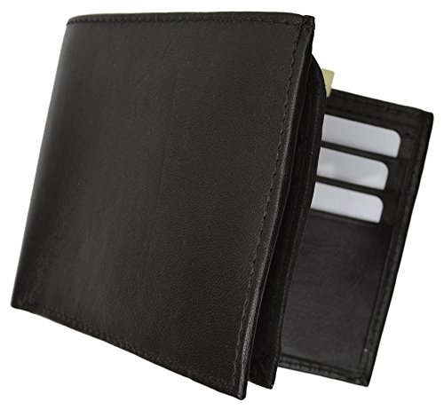 -. Title : Leather Men Bi Fold Wallet with FIXED FLIP UP single Window ID - BLACK-by Marshal®