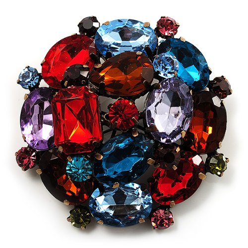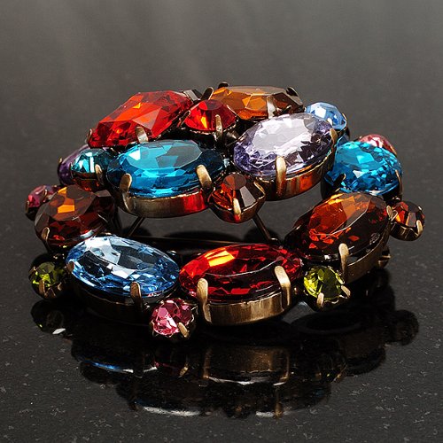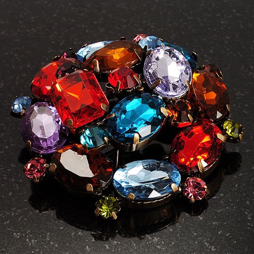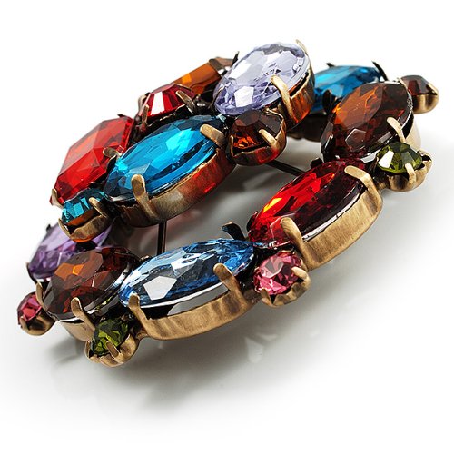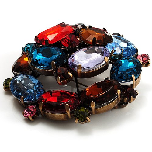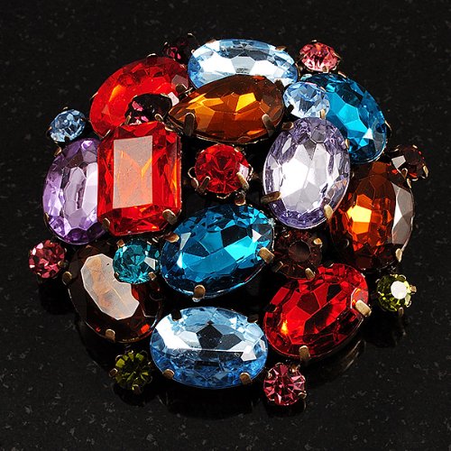 -. Title : Large Multicoloured Dimensional Corsage Acrylic Brooch (Bronze Tone)