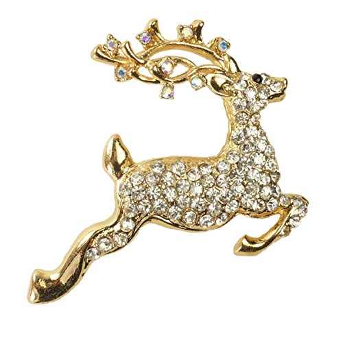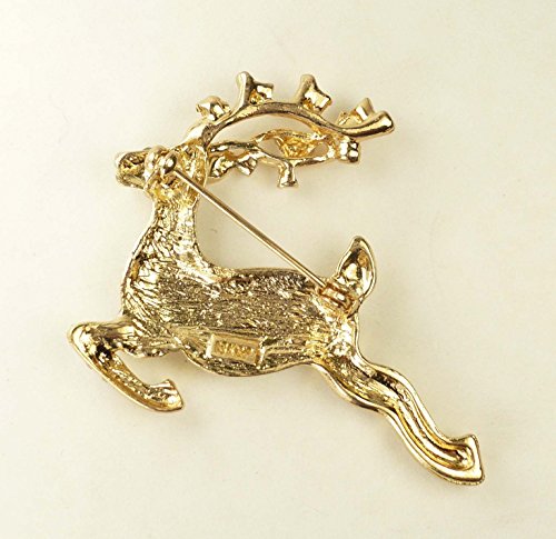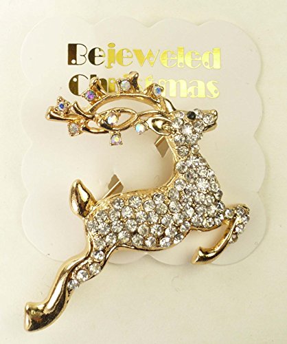 -. Title : Bejeweled Christmas "Leaping Stag" Rhinestone Pin Brooch 201