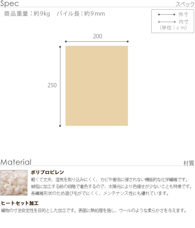 ※メーカー直送のため代金引換はお受けできません。※沖縄・一部離島は別途送料がかかります。お見積もりいたしますのでお問い合わせ下さい。【カラーバリエーション】ブラック・ブルー【仕様】本体:ポリプロピレン100%【サイズ】本体:約250x200cm毛足長さ(パイル):約9mm重量:約9kg株式会社ナカムラ(51000163)