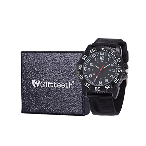 -. Title : WOLFTEETH Water Resistance Analog Quartz Black Dial Sport Military Unisex Style Boys Wrist Watch #3020