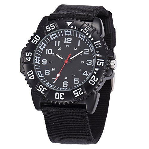 -. Feature : Round Dial With 12-Hour Indices, Small 24-Hour Indices, Has Military Time Numbers And Sliding Frame, Help Teach Children To Tell Time Using Numbers / Quartz Movement & Stainless-Steel Back Cover; Breathable Adjustable Canvas Strap Advantages In Quicker Dry Time, Comfortable Wearing / Water Resistance For Daily Waterproof Use Only, Cannot Be Soaked In The Water / Size: Case Diameter: 47.38mm; Case Thickness: 13.22mm; Band Width: 22mm; Band Length: 187.6mm; Weight: 0.07kg / Suitable For Over 12 Years Old Children; Same Design With Non-Luminous & Luminous Ones In Different Colors----Non-Luminous: Our SKU 3015(Brown), 3016(Grey), 3017(Blue), 3019(Military Green), 3020(Black); Luminous: SKU 3018(Military Green), 3021(Black)