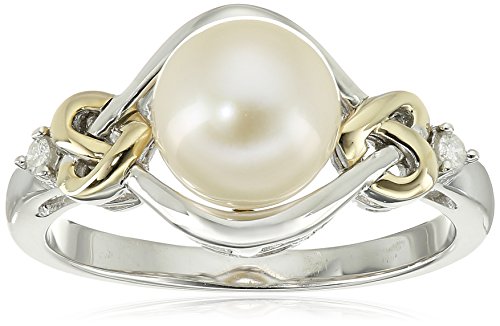Sterling Silver and 14k Yellow Gold 8mm Freshwater Cultured Pearl and Diamond Ring (0.03 cttw, I-J Color, I3 Clarity), Size 8