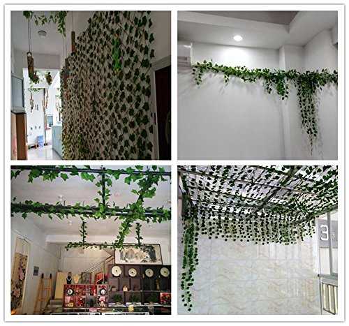 - Each ivy hanging vine approx 7.2 Ft/2.2 meters long, total 86.4 Ft, each strand has about 80 leave, leave size about 1.38-1.77inch/3.5-4.5cm
