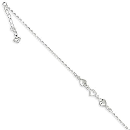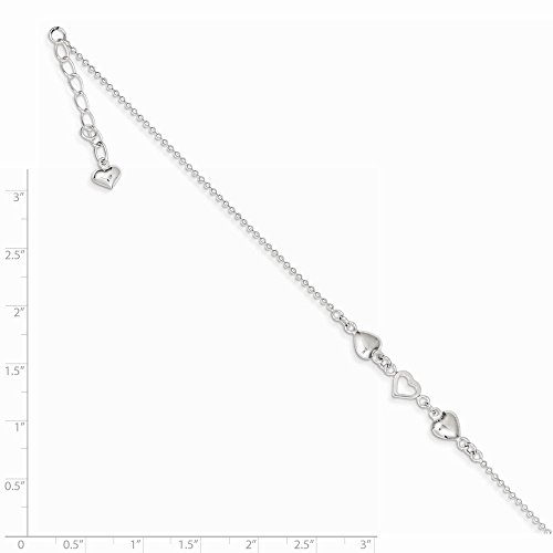 -. Title : Sterling Silver 10inch Polished Hearts Anklet 10 Inches