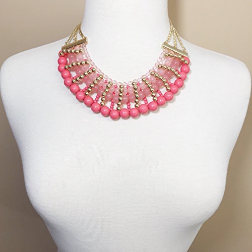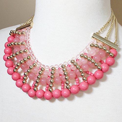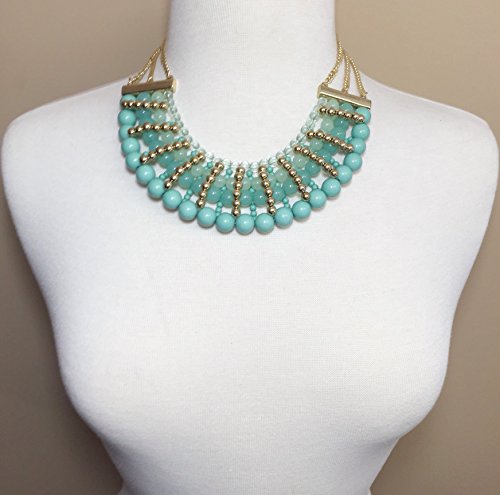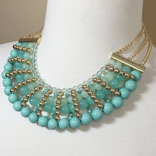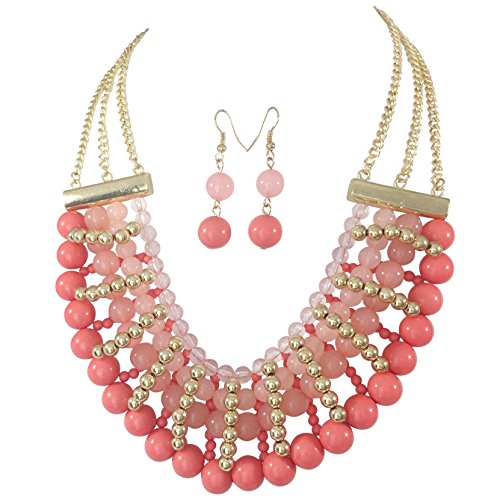 -. Title : Beaded Statement Big Gold Tone Bib Bubble Boutique Necklace Earrings