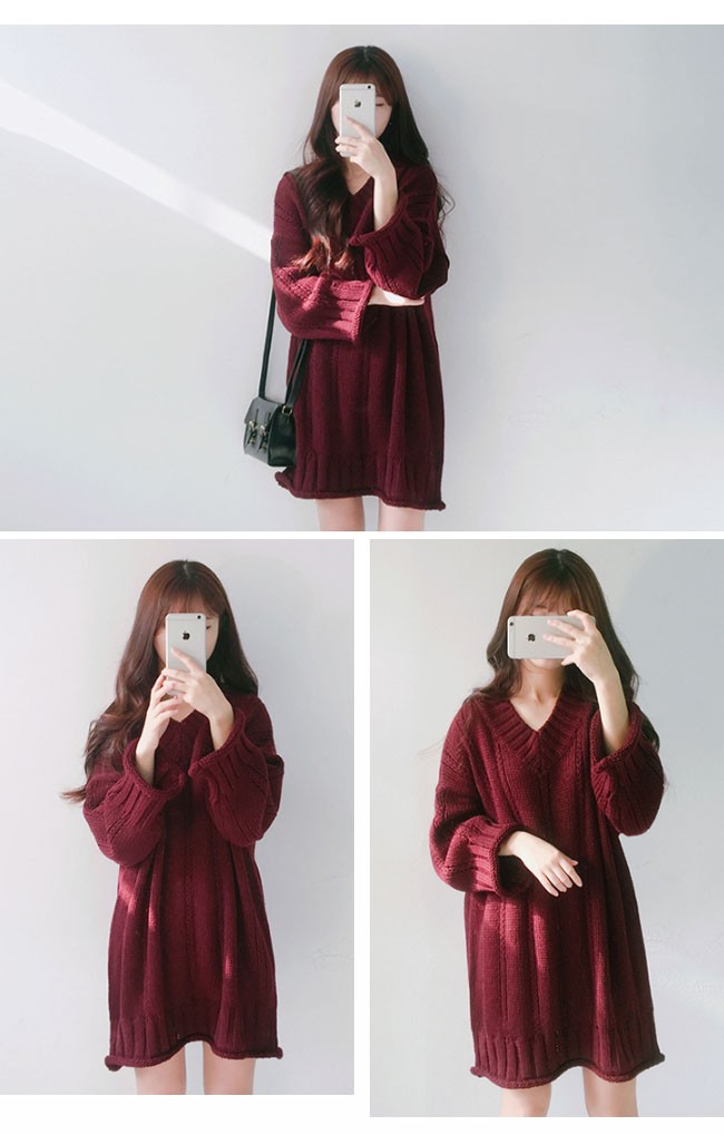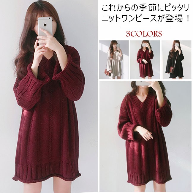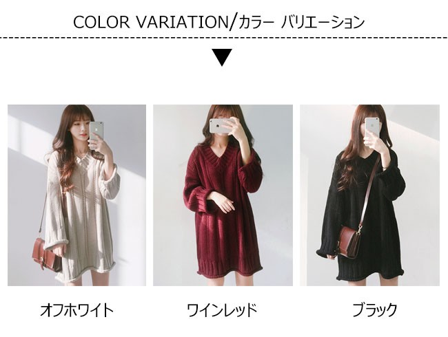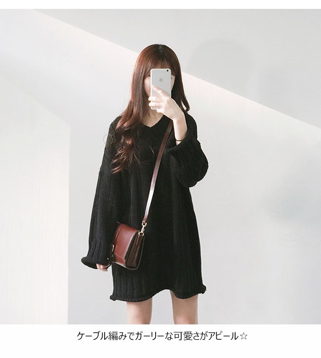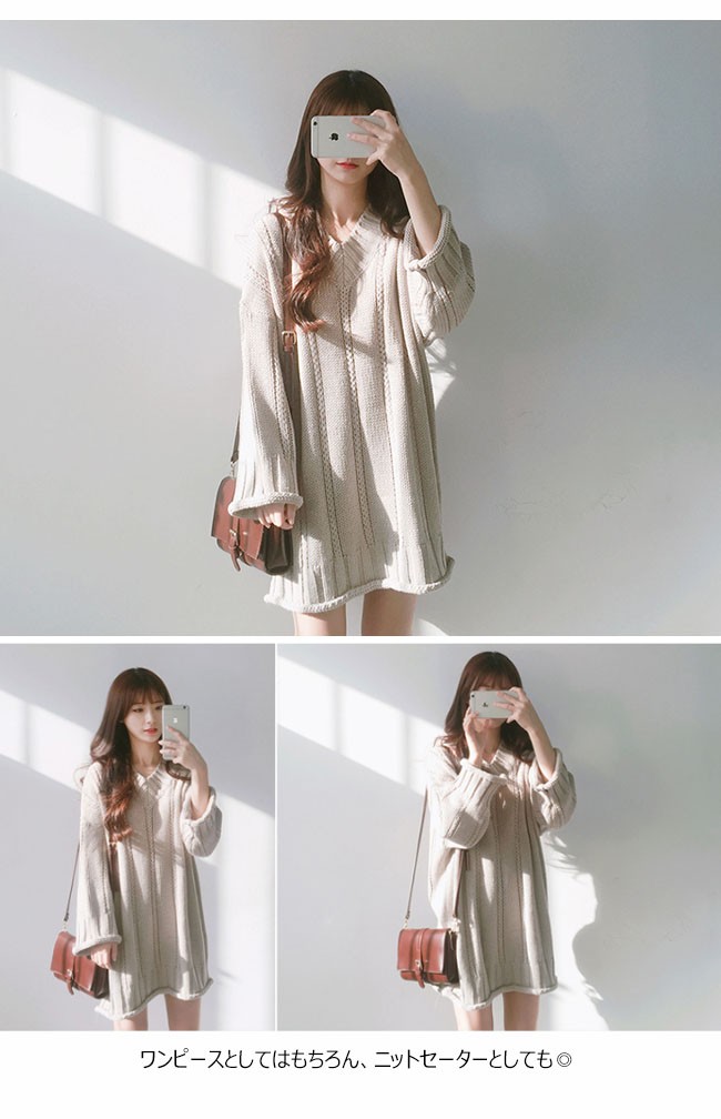 | 商品名 | 秋冬ニット ニットワンピース ニットセーター レディース 無地 長袖 ミディアム丈 Vネック ゆったり ケーブル編み 2017秋冬新作 |