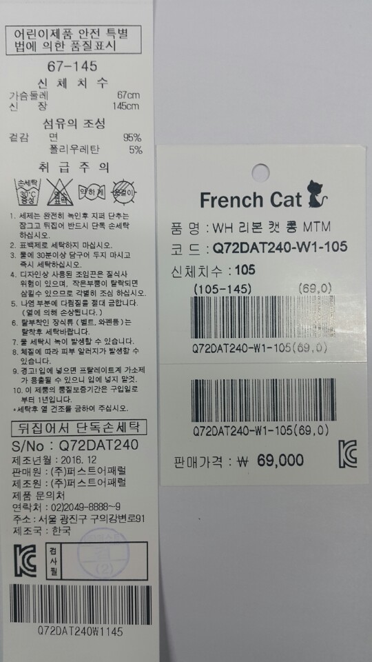 소재-면 95% 폴리우레탄 5%