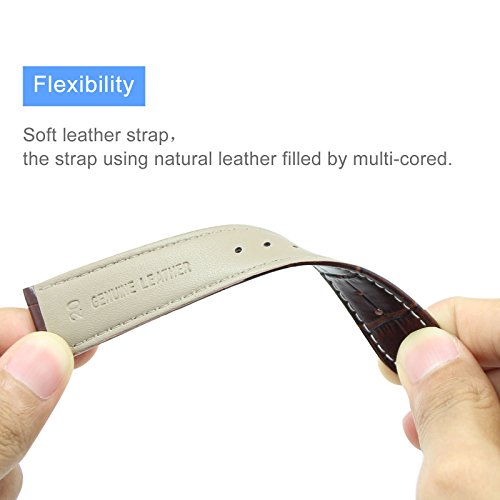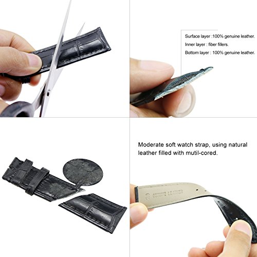 -. Feature : ·Multilayer process: front and back are made of calfskin and imported from Italy cowhide. Hand stitching, thick wax lines and wide reversible loops, x- lines, two styles of choice, wearing them, feel good! / ·Classic style: soft and comfortable leather strap, so that you can apply to business occasions and leisure occasions, never outdated. / ·Material: the surface leather is 100% leather, the inner layer is fiber packing, the bottom leather is made of high quality leather, and the surface is smooth, comfortable and waterproof. (color options: black, brown) / ·The belt is a standard watch band replacement style, available in a wide variety of sizes and suitable for most watches. / ·Please understand that the color may vary somewhat from the photos of the dermis due to different batches.