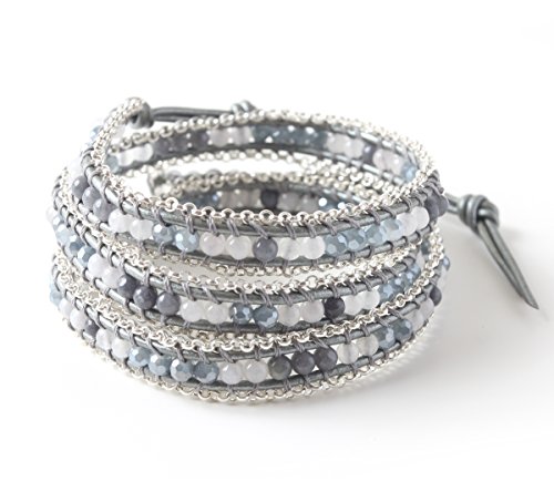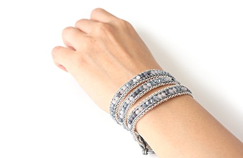 원본상품명: [ケイウンドウ]KEIUNDOオリジナル レザ? 3連 ラップブレスレット 天然石 アベンチュリン シルバ?グレ?E 本革 巾着袋付き レディ?ス メンズ keisg3e