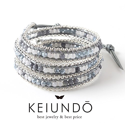 KEIUNDO(K《운도우》) [K운도우]KEIUNDO오리지날 레더 3 연 랩 팔찌 천연석 아벤추린 실버 그레이E 가죽 건착 봉투 첨부 레이디스 맨즈 keisg3e