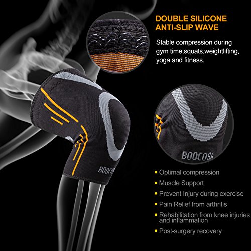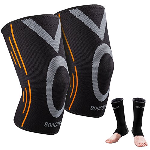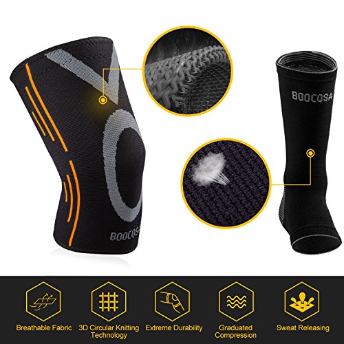 - TIRED OF BUYING knee brace that keep falling down during your competition? Do you suffer from ankle pain, ankle sprain, calf pain or swellings in the feet? Make the switch to premium compression sleeves and support that is breathable, made of durable high quality compression fabric Nylon. BOOCOSA provides best Knee Sleeves (1 Pair) and Ankle Braces (1 Pair) for you.
