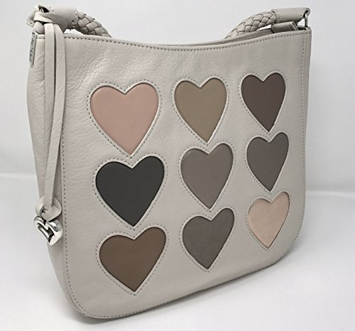 Brighton Holly Leather Multi Color Hearts Off White Shoulder Bag