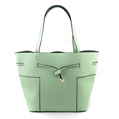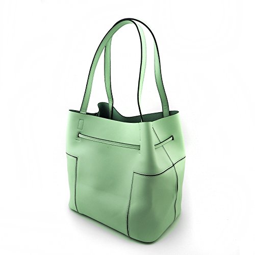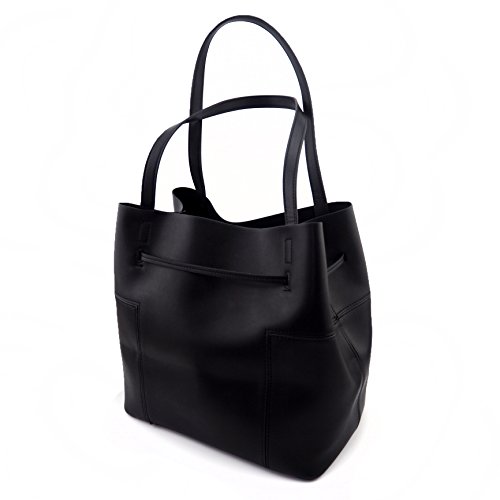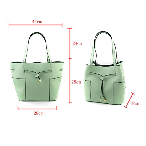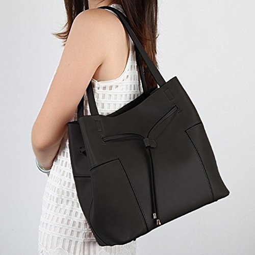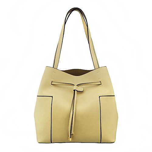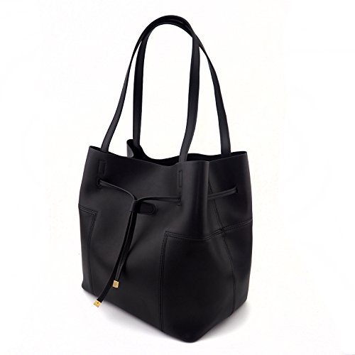 Product Description Materials: outside PU ,inside faux cow leather Dimension(L*W*H):11" x 7" x 11"(28cm x 18cm x 28cm);Shoulder Strap Height:9.5(24cm); Weight:1.25lb. Style:Shrink closure,Bucket Style Bag, Sharp:Rectangle. Fashion,Simple and elegant.Comfortably holds an iPad Mini,a wallet,a umbrella,a small cosmetic bag. 0