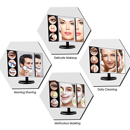 MAKARTT Lighted Makeup Mirror 2017 Newest 5 in 1 Vanity Mirror with Touch Sensor, 1x/3x/5x/10x Magnification and USB Charging, 360° Adjustable Stand for Countertop Cosmetic Makeup (Black)