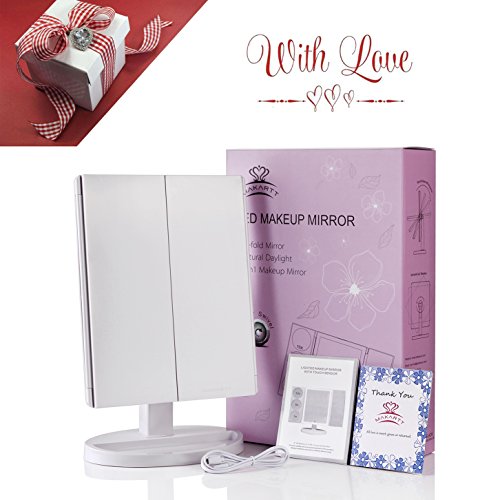 MAKARTT Lighted Makeup Mirror 2017 Newest 5 in 1 Vanity Mirror with Touch Sensor, 1x/3x/5x/10x Magnification and USB Charging, 360° Adjustable Stand for Countertop Cosmetic Makeup (White)