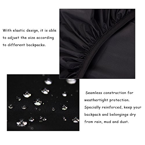 -. Feature : Capacity: 35-40L. Specially reinforced, keep your backpack and belongings dry from rain, mud and dust. / Seamless construction for weather-tight protection / With elastic design, it is able to adjust the size according to different backpacks. / Can be free folded in the sachet, it is portable convenient and ultra-light weight. / Perfect for outdoor, traveling, riding, climbing