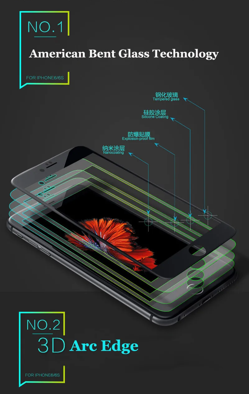 Toughened Glass:Silk Printing Anti-Explosion Film For iPhone 6S 6 Plus