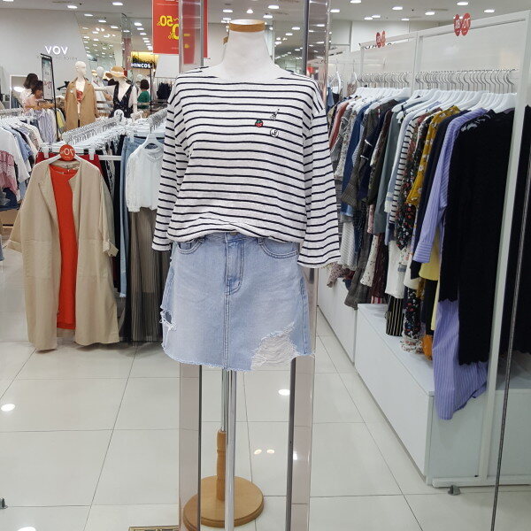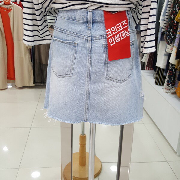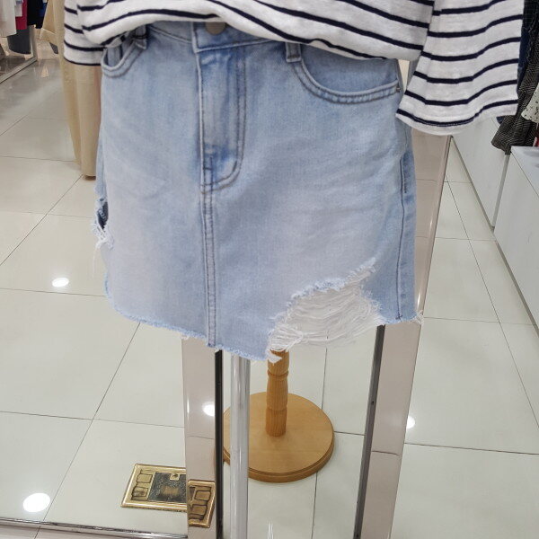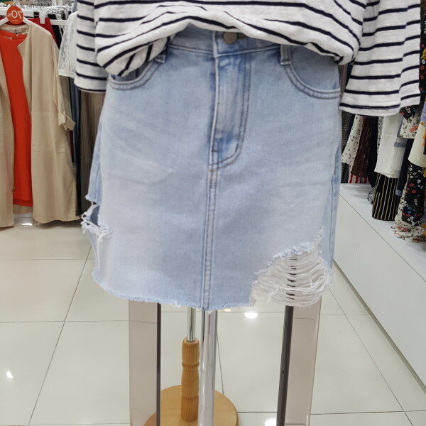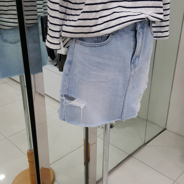 헤짐 포인트가 트랜디한 디자인의 연청 스커트입니다 살짝 신축성 있는 원단으로 활동하기 좋은 아이템입니다