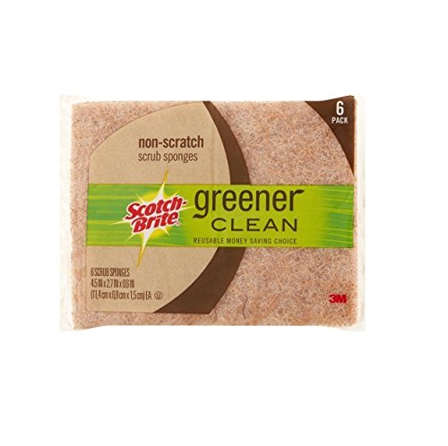 Product Description The Six-Pack of Scotch-Brite Greener Clean Natural Fiber Scrub Sponges come in handy for cleaning up most everyday messes. Designed to outlast more than 30 rolls of paper towels, they are an eco-friendly choice for the home. They have a scrub side made from 50 percent natural agave plants for cleaning dishes and surfaces in a greener way. The sponge side is made from 100 percent natural materials and recycled paper for tackling those messes and spills. They are gentle on almost all surfaces, but tough on cleaning action. The Scotch-Brite greener clean sponges are non-scratching and can be reused. 0
