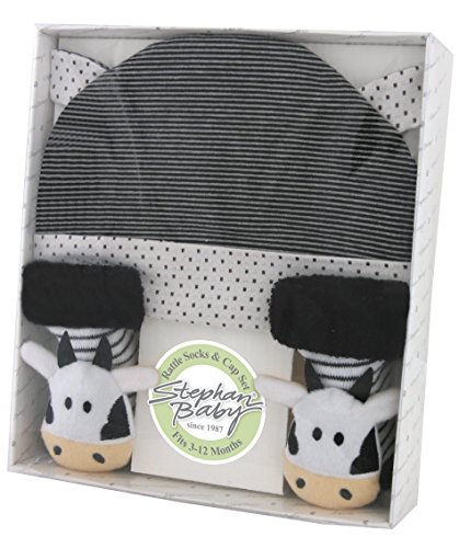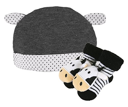 [Product Information]- Stripy cow rattle socks and knit cap are sized to fit little ones 6 to 12 months of age