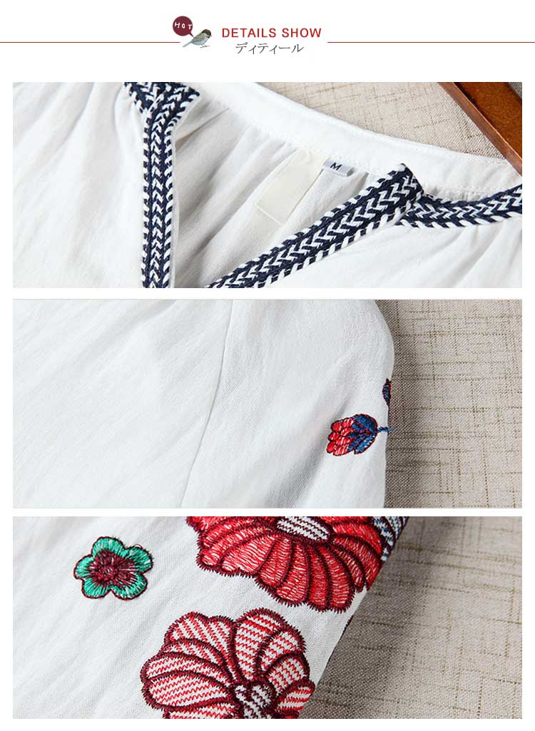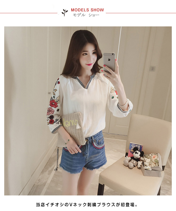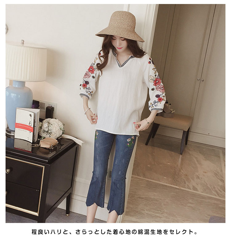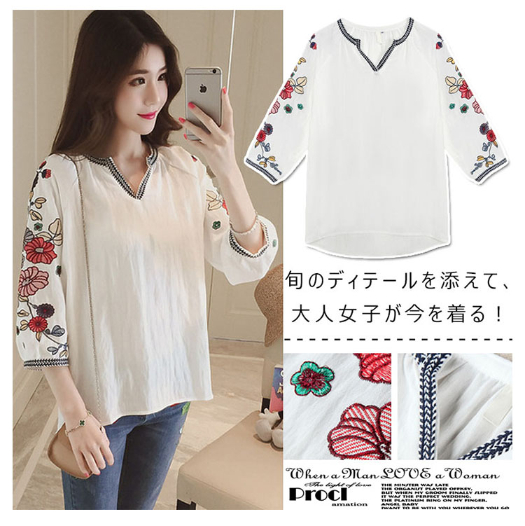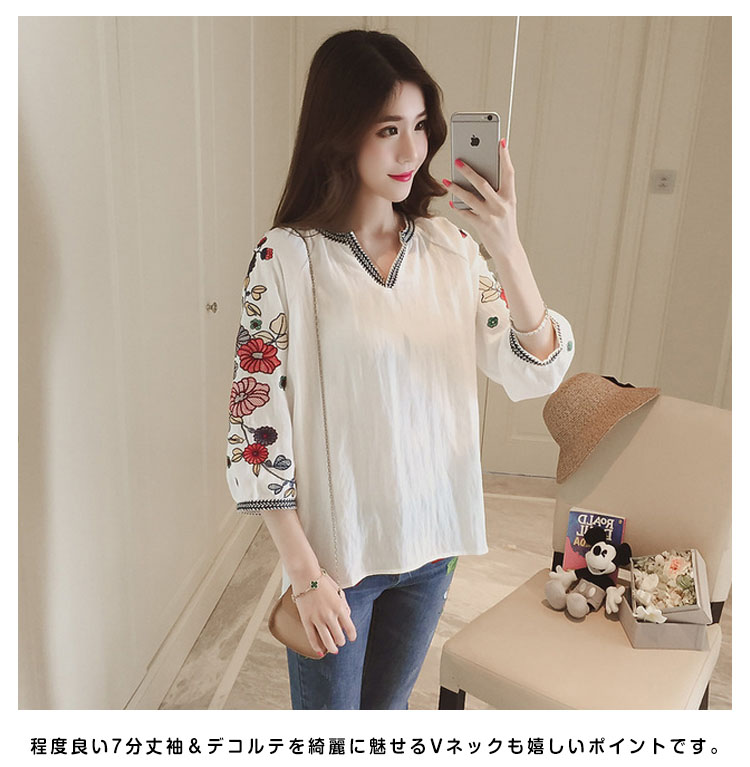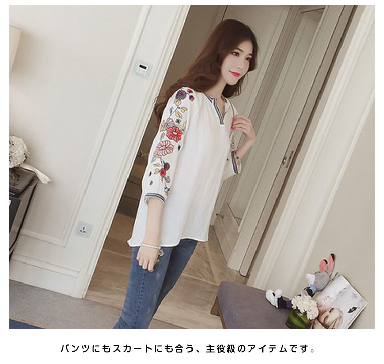 | 旬のディテールを添えて、大人女子が今を着る!当店イチオシのVネック刺繍ブラウスが初登場。華美になりすぎない繊細な花刺繍はデイリーにピッタリ。程度良い7分丈袖&デコルテを綺麗に魅せるVネックも嬉しいポイントです。程良いハリと、さらっとした着心地の綿混生地をセレクト。リラックスして着られるふんわりシルエットで、気になる部分もしっかりカバーしてくれます。パンツにもスカートにも合う、主役級のアイテムです。 | |