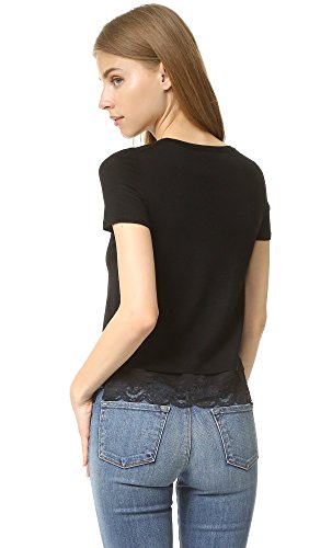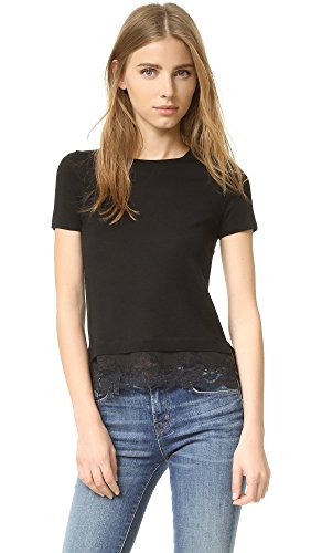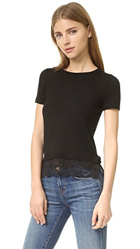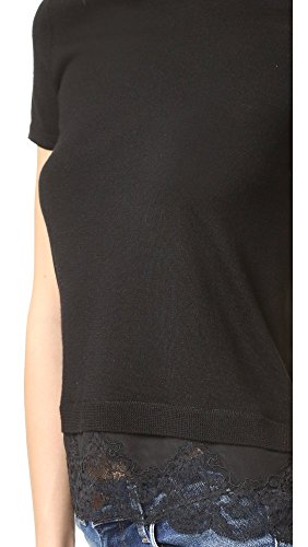 A lingerie-inspired peek-a-boo hem lends a layered effect to this lightweight Theory sweater. Banded edges. Short sleeves.