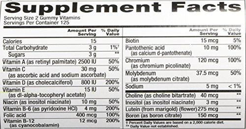 Get the essential vitamins and minerals you need with this multivitamin dietary supplement. The chewable gummy formula features berry, peach and orange flavors for a delicious taste. The multivitamins are an excellent source of vitamin A, C, D, E, B6 and B12.Feature