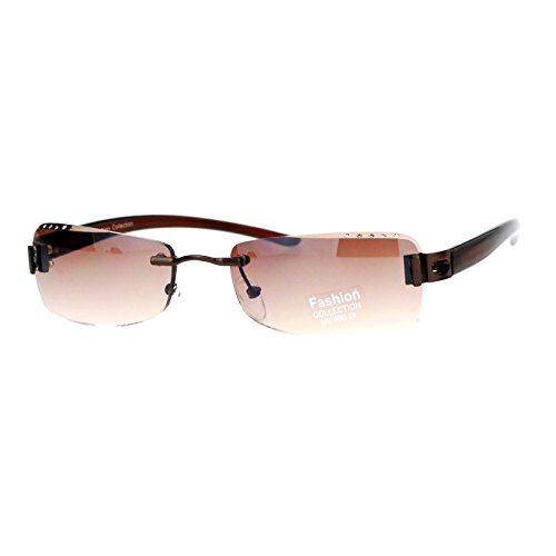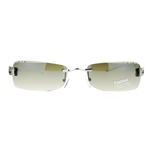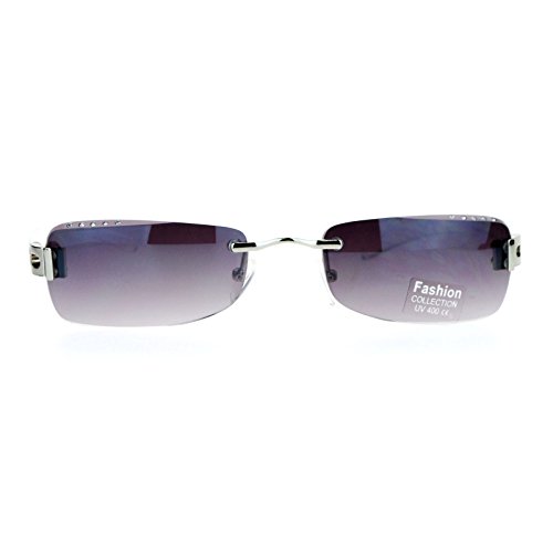 SA106 Luxury Rhinestone Iced Out Rimless Narrow Rectangular Sunglasses