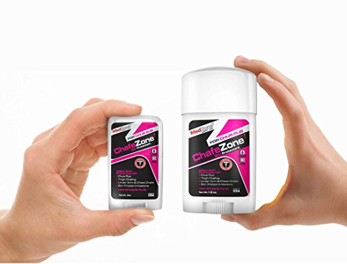 Try ChafeZone Anti-Chafe Stick Balm to prevent the chafe before it happens! MedZone's long-lasting formula allows for maximum protection against chafe. Simply swipe the stick balm on areas prone to friction like the inner thighs, arms, bra line, neck... ANYWHERE!