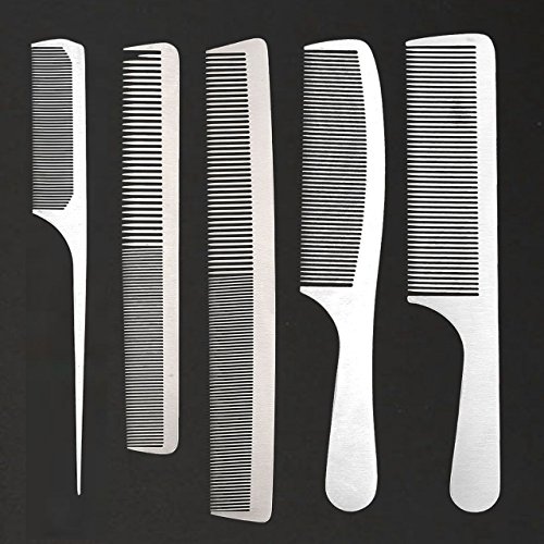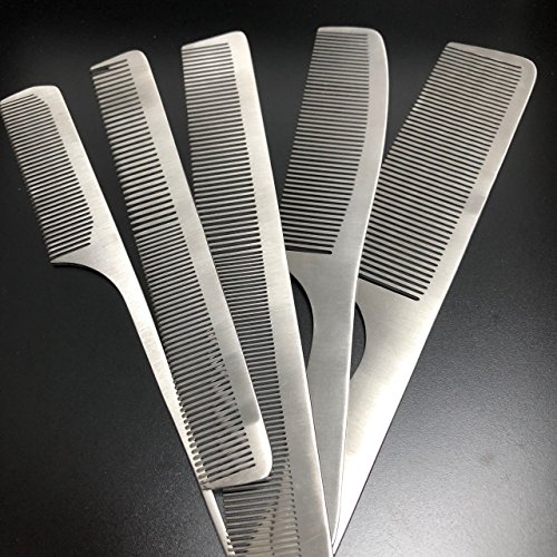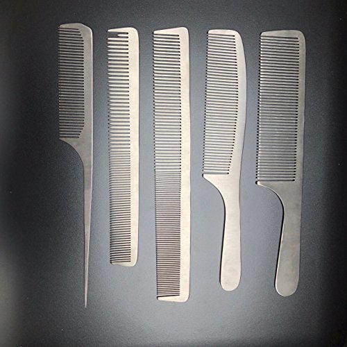 CCbeauty 5-Packs Metal Barber Comb Set Pack for Men & Women,Professional Hairdressing Salon Combs Hair cutting Tool Detangler Comb with Leather Bag